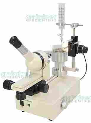 实验室仪器 磨针仪提供一个光学平面的磨面盘,在显微镜下移液管(玻璃微电极、显微注射针等)与磨面盘接触,通过加入的适量研磨浆,以一定的转速,将目标物间端制作成尖锐的丁页端,亦可处理成不同斜切角度。这种通过磨针仪处理后的微电极、显微注射针、移液管等,提高了微电极的线性、注射针易于刺入细胞对细胞损伤小、减少切面的毛刺等。
